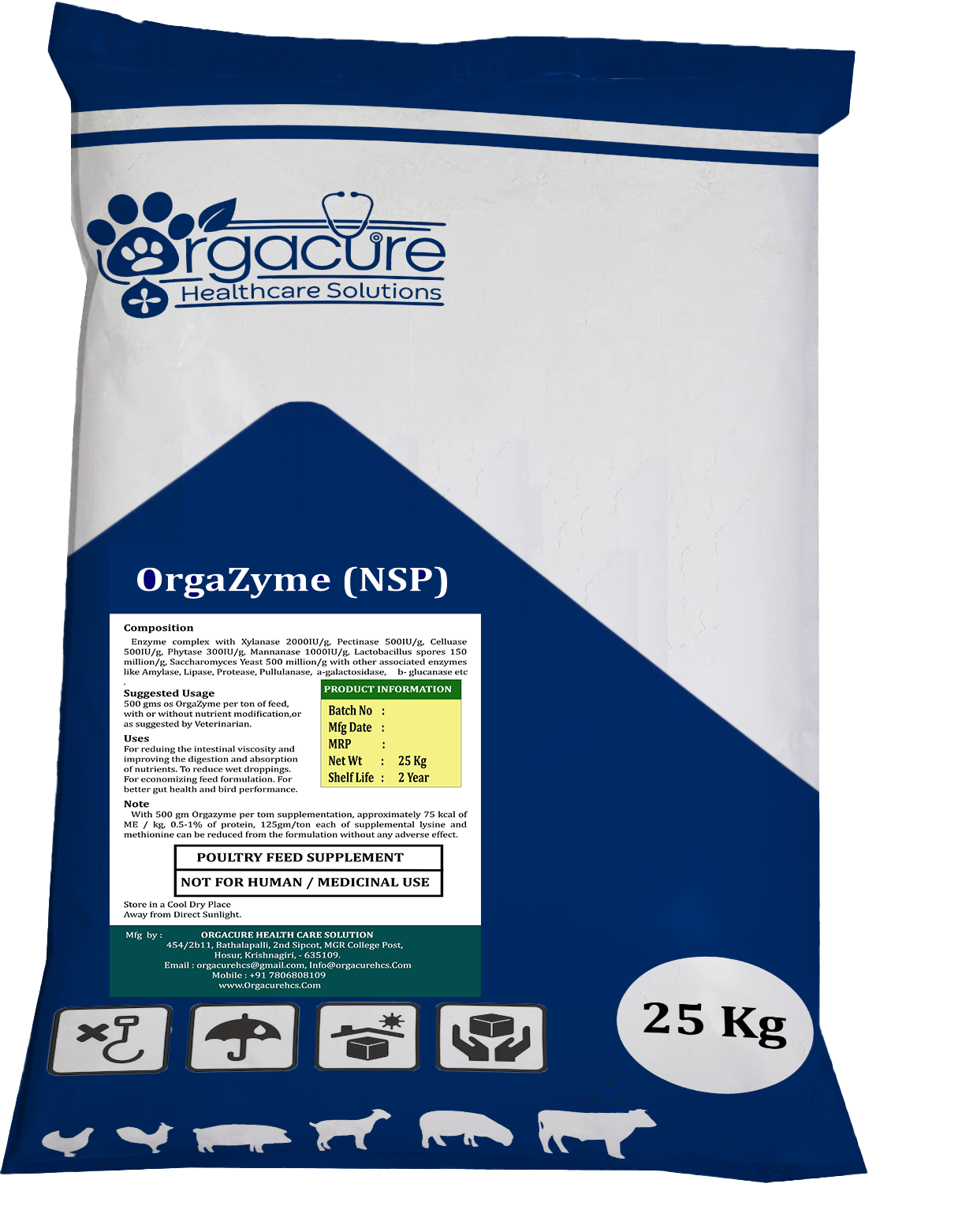Reduces accumlation of yeast and fungai. Improves FCR, weight gain and production in layers